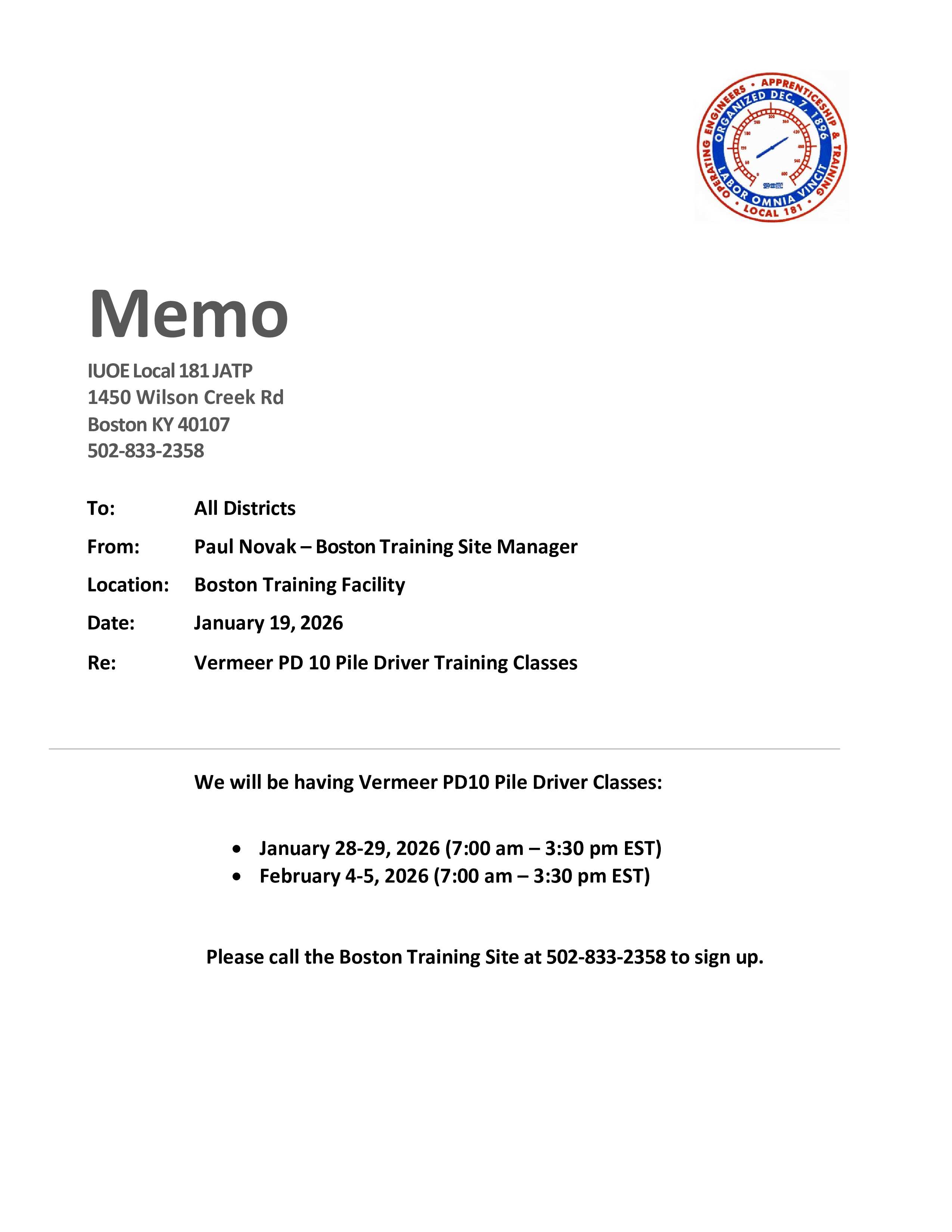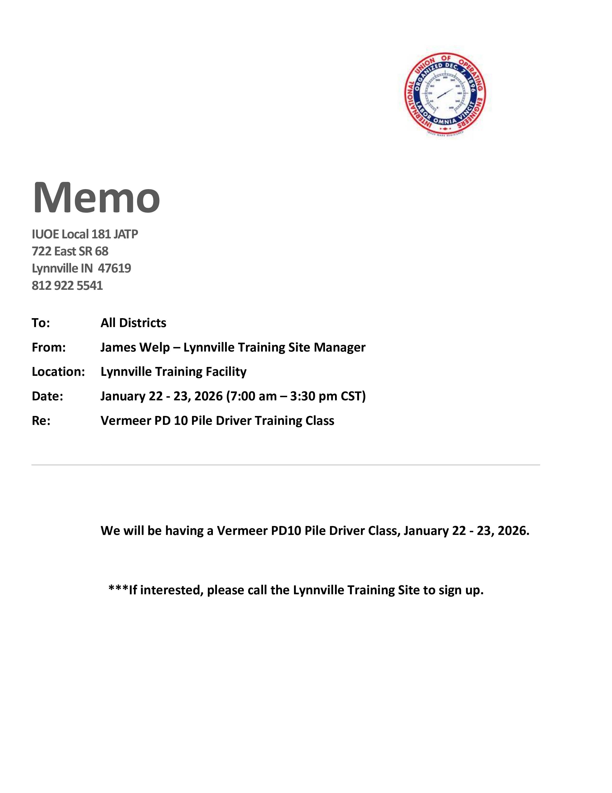 We will be having a Vermeer PD10 Pile Driver Training Class -- January 22 - 23, 2026.